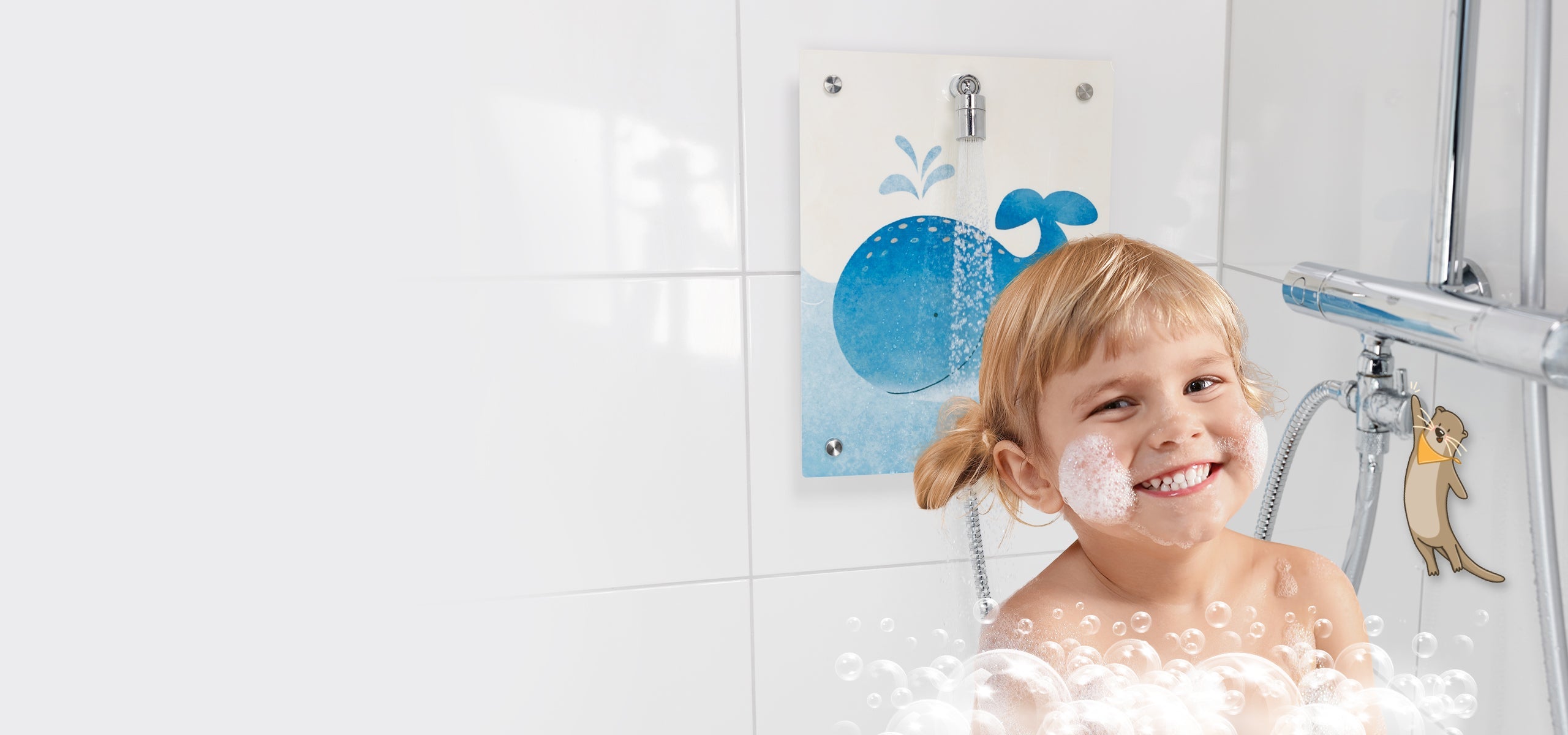 Passe das flexible Duschsystem schnell & einfach immer wieder neu auf die Größe deines Kindes an.