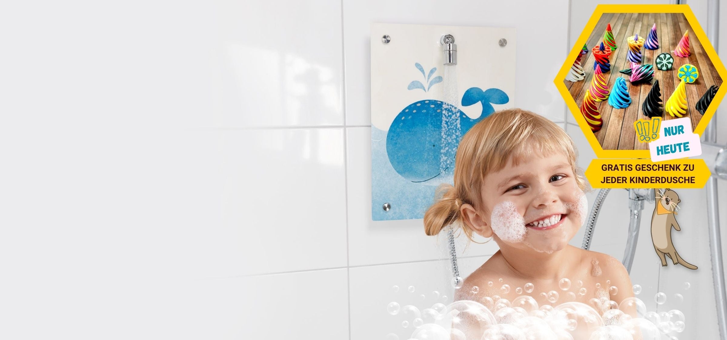 Passe das flexible Duschsystem schnell & einfach immer wieder neu auf die Größe deines Kindes an.